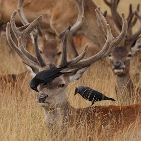Presumably the jackdaws at this location are picking ticks, fulfilling the role of oxpeckers.