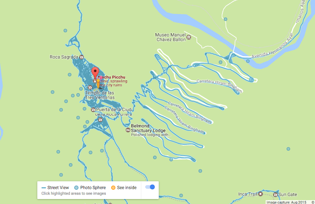 For newbies, start here (or the satellite view), zoom in with the +/- buttons (drag to recenter), then drop the little yellow Streetview man where you want to walk. Drag your cursor left/right for panorama views, and (especially at Machu Piccu) up and down to look up and down.