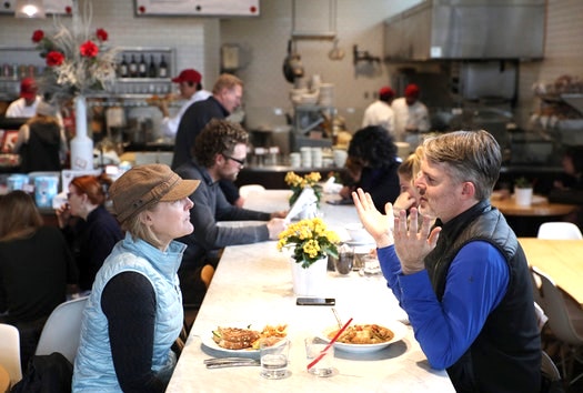 “In California, it’s the norm,” said architect David Shea of Shea Inc. in Minneapolis, which designs restaurants all over the country. “Up and down the East Coast, too. In New York, it’s a given that we’ll include a social table. It’s all about socializing, about talking about the food you’re eating and the drinks you’re drinking. I’ve been pushing socialization as a part of dining for as long I’ve been at this, and that’s 40 years.”This newfound acceptance is part of a larger trend, where dining out is becoming more and more casual.