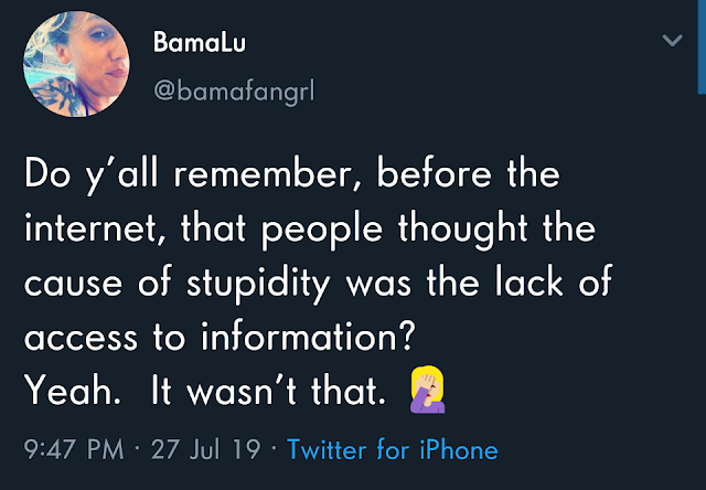 The above photograph was taken while Trump was reading prepared remarks about Ilhan Omar and other freshman congresswomen. In recent weeks he has emphasized that he is a "really good speller" and that misspellings in his Twitter comments are the result of "fat fingers" on the keys. But as I've annotated with the red oval in the photo, the document he was reading from has "Alcaida" and "some peopel" in handwritten form. This mistake cannot be attributed to an accidental "typo."