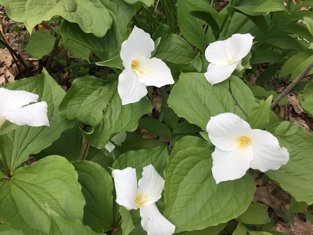 The trillium are also larger and more numerous, but the area they cover has increased only by a couple square meters, with only a few outliers beyond the original cluster. That rate of change makes one appreciate how many centuries it must have required when they eventually cover a forest floor as far as one can see in every direction.