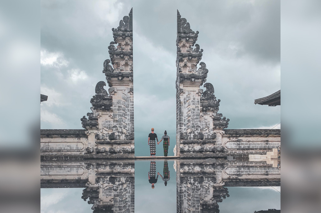 Tourists visiting Bali have been "shocked" to discover that the reflecting pool effect is created at the site by the strategic placement of a mirror in front of the camera, and that one needs to wait in line for hours to use the mirror. Details at the New York Post.